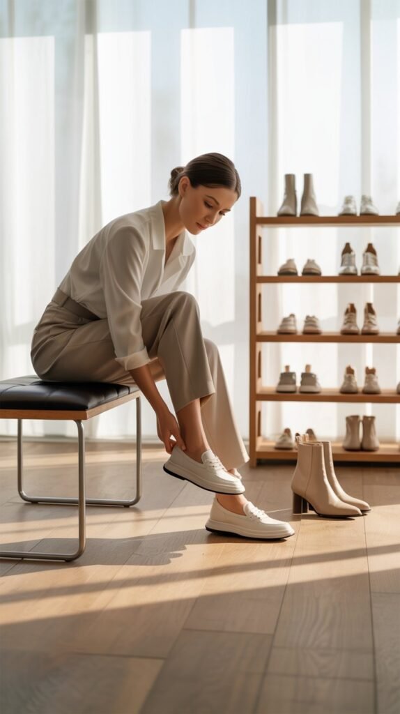 - Classic white sneakers — everyday comfort and versatility