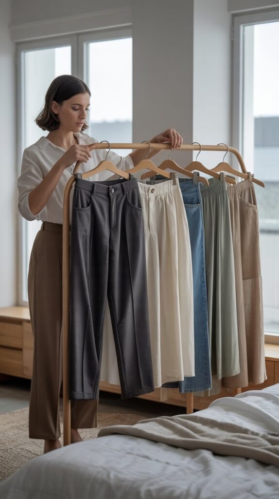 The foundation of a truly balanced fall capsule wardrobe begins with the right selection of bottoms — timeless pieces that combine comfort, structure, and effortless sophistication.