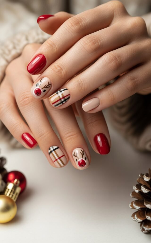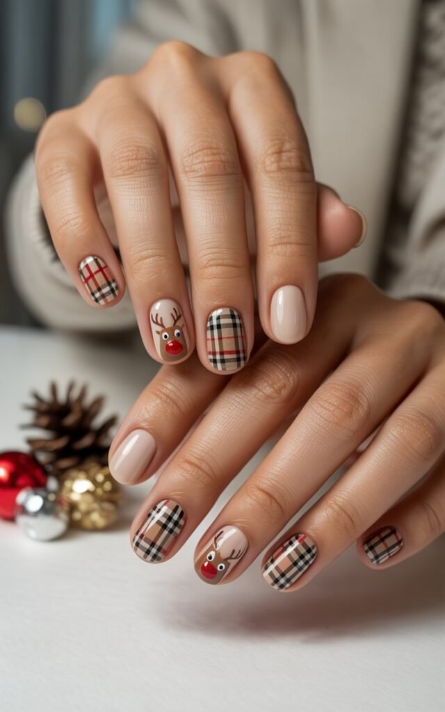 Design 2: Reindeer and Burberry Print Nails