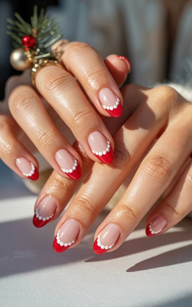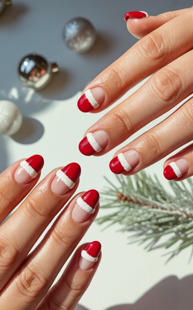 These Santa hat French tips are playful, minimal, and perfect for festive celebrations.