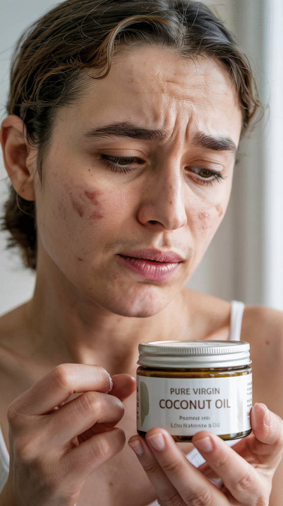 does coconut oil clog pores, coconut oil acne reaction, side effects of coconut oil on face, is coconut oil safe for oily skin, comedogenic oils to avoid, why coconut oil causes breakouts
