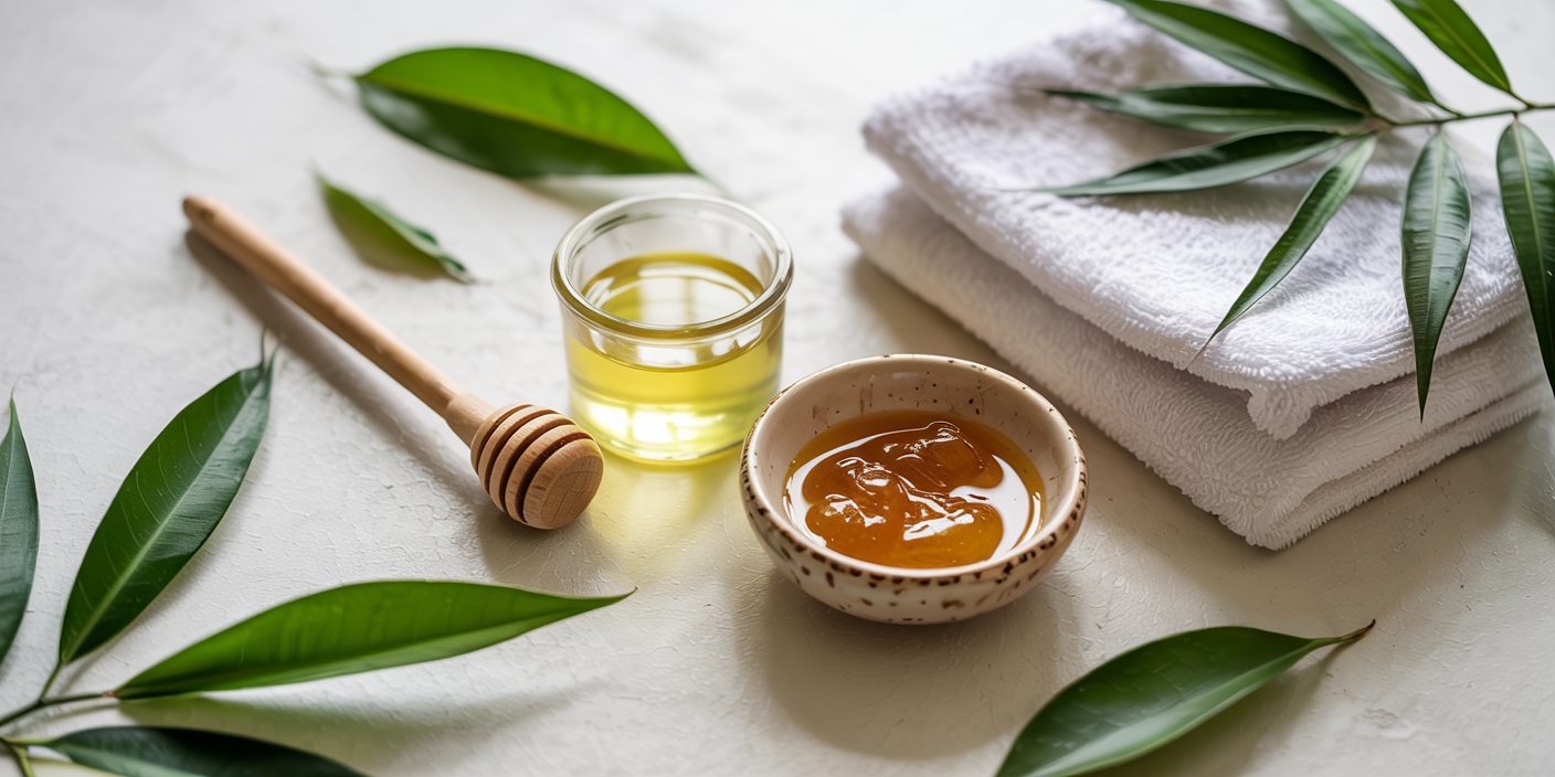 Coconut oil + 1 tsp raw honey (leave for 10–15 mins)