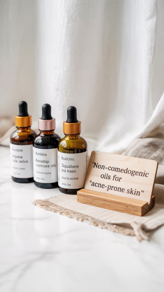 - Jojoba Oil – Non-comedogenic, mimics skin’s natural oils.