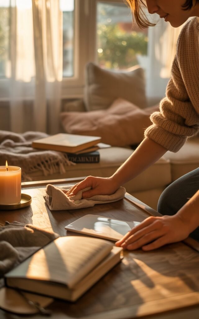 Pro Tip: Write a small affirmation on paper and keep it nearby while you clean. Something like, “This space deserves care, and so do I.” It’s a quiet reminder that cleaning isn’t punishment — it’s self-respect in motion.