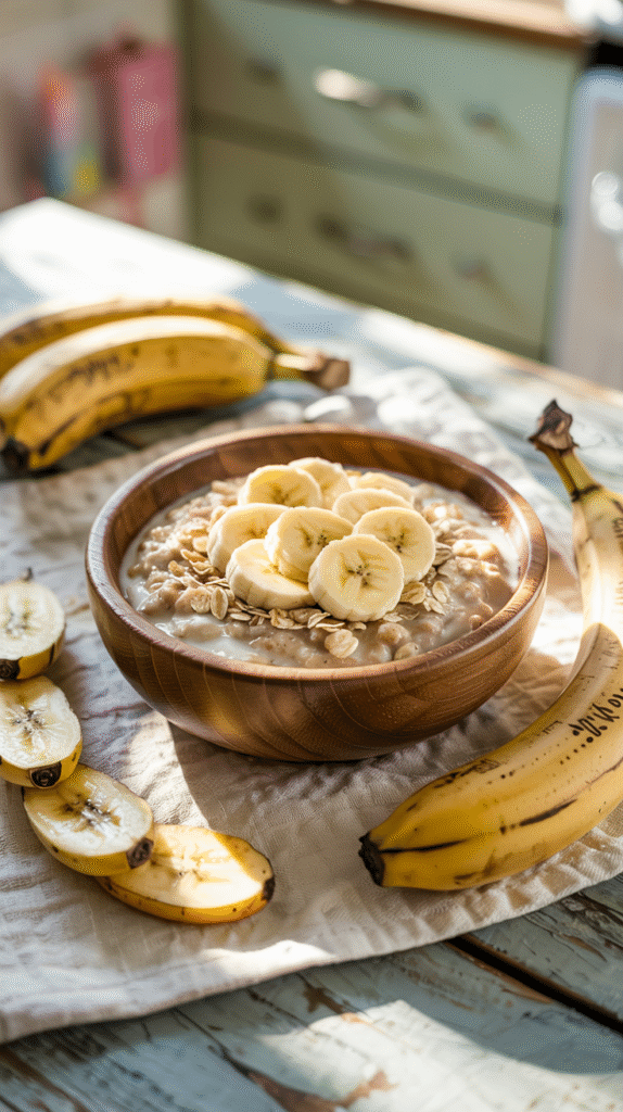 • Mash 1 ripe banana and mix with 1 tablespoon of ground oatmeal.