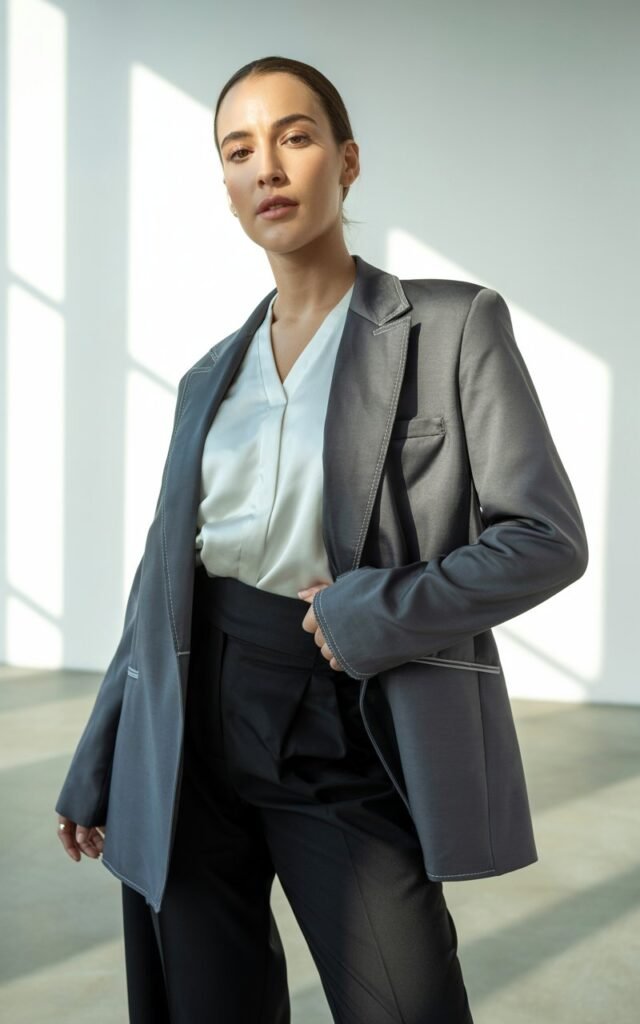 1. Single-button blazers draw attention to the waist naturally, enhancing curves.