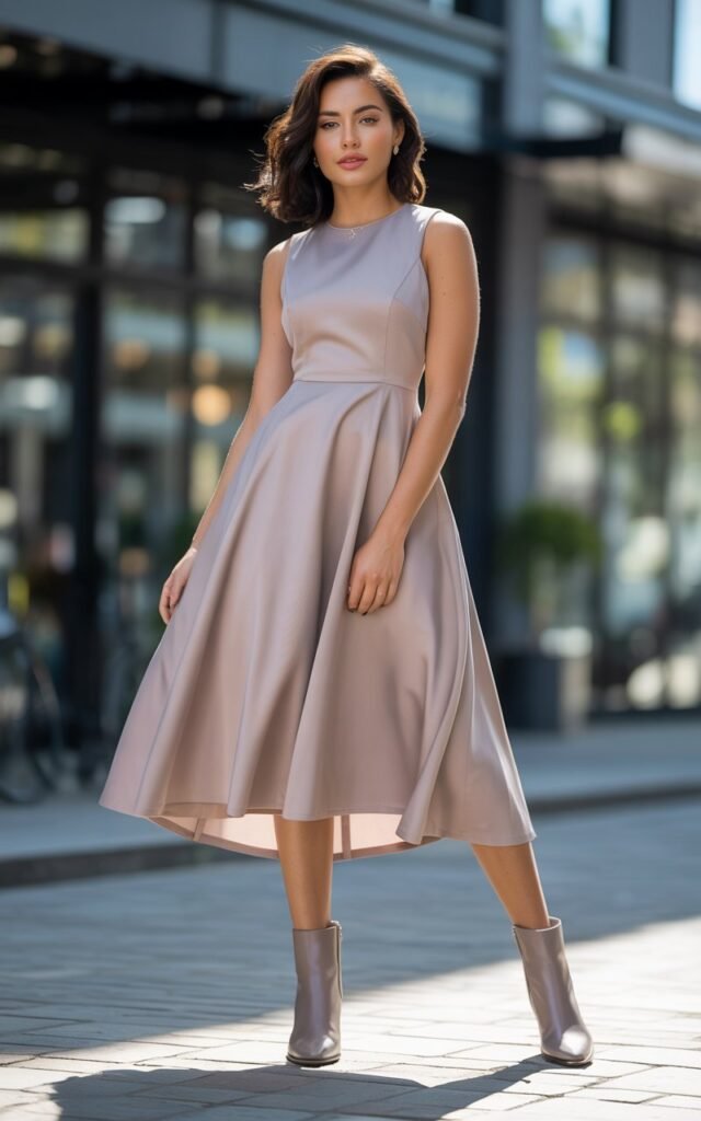 3. Layer with a cropped jacket or fitted blazer for a polished look.