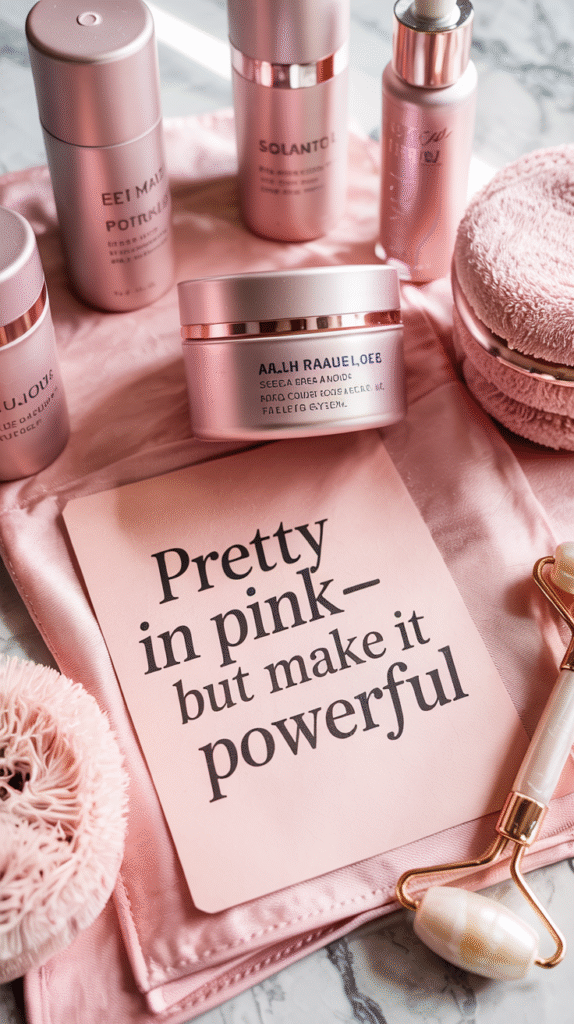 Each product here offers real benefits—whether it’s hydration, exfoliation, or glow-enhancement—all wrapped in pink perfection.